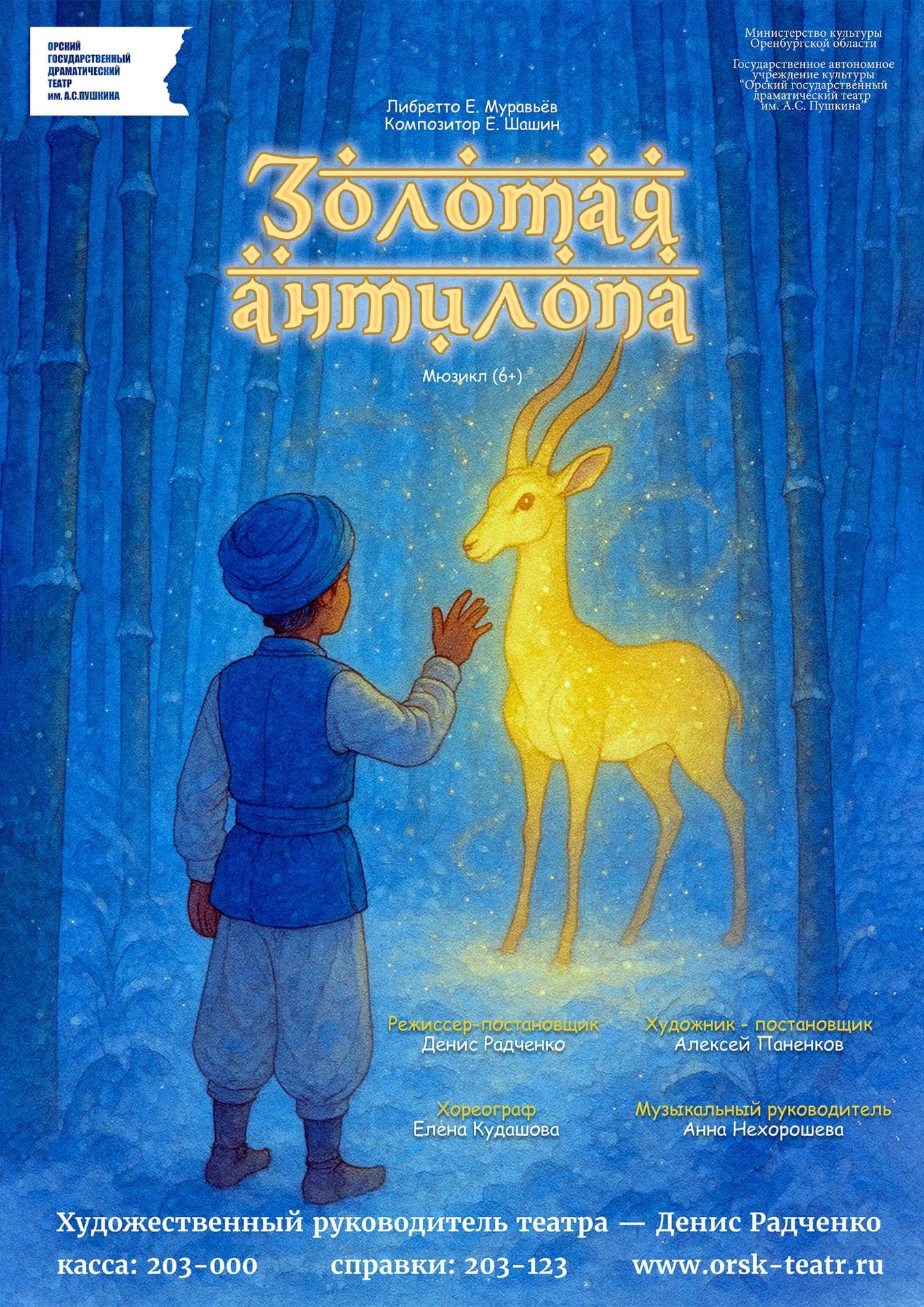В джунглях Индии живет волшебная антилопа, которая ударами копыт высекает золотые монеты. Мальчик Али спасает волшебную антилопу от жадного Раджи и его слуг. С помощью смелости и доброты Али преодолевает опасности, а алчный Раджа платит за свою ненасытность! Захватывающая история о дружбе, чести и взаимовыручке — яркие костюмы, песни, танцы и волшебство на сцене! Идеально для всей семьи.